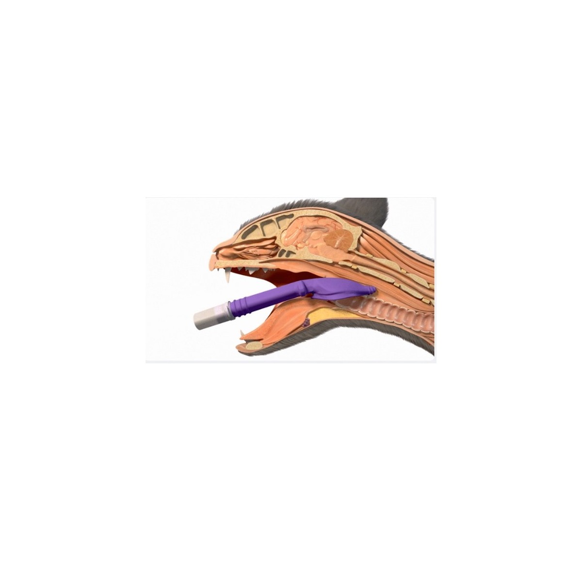 Con il posizionamento nella faringe, la tenuta sicura delle vie aeree è garantita dalla combinazione dello speciale materiale e dal design che rispecchia e rispetta la struttura anatomica delle vie aeree del gatto. L'introduzione e il posizionamento del V-GEL avviene in pochi secondi (meno di 4 secondi) senza traumi per il paziente.