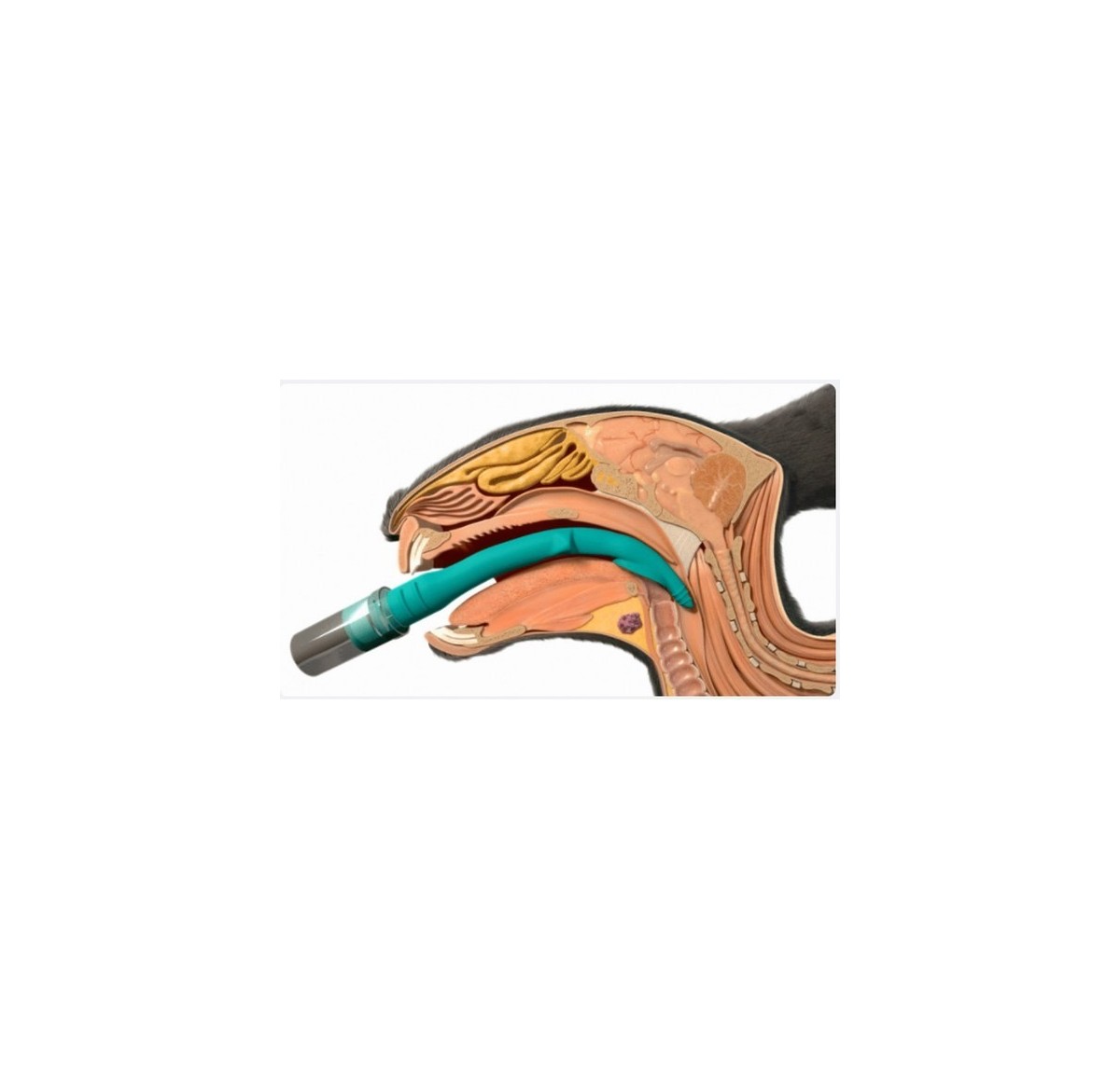 Con il posizionamento nella faringe, la tenuta sicura delle vie aeree è garantita dalla combinazione dello speciale materiale e dal design che rispecchia e rispetta la struttura anatomica delle vie aeree del coniglio. L'introduzione e il posizionamento del V-GEL avviene in pochi secondi (meno di 8 secondi per il coniglio) senza traumi per il paziente.