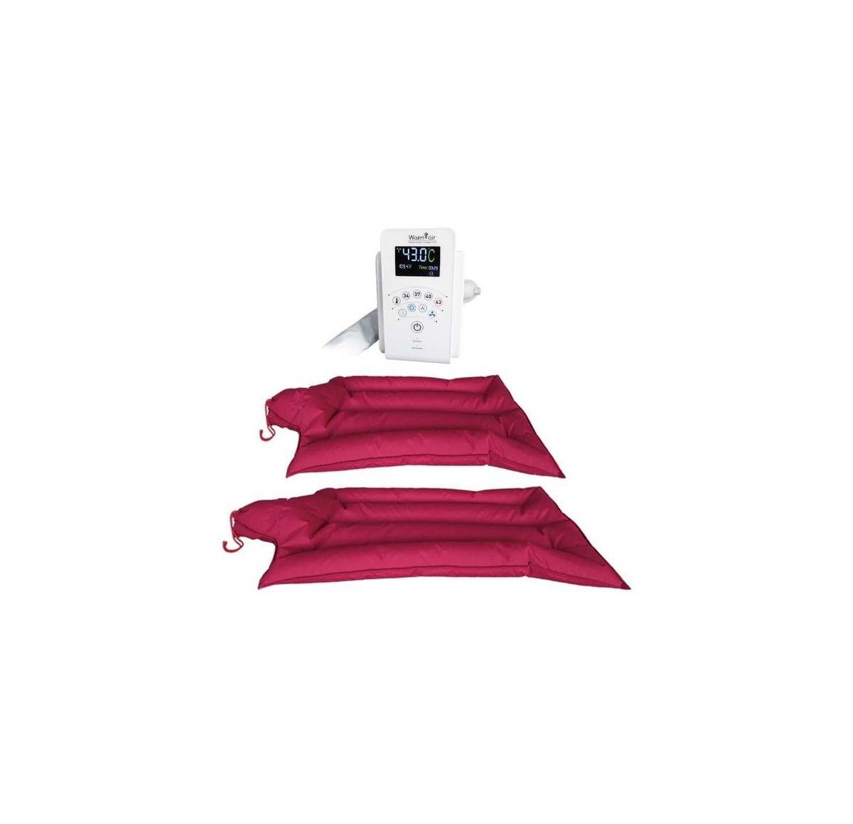 WARMAIR è costituito da una unità principale che genera aria calda che viene immessa in un materassino collegato. Dal materassino fuoriesce uniformemente e costantemente l’aria calda che va a scaldare l’animale posizionato sopra.