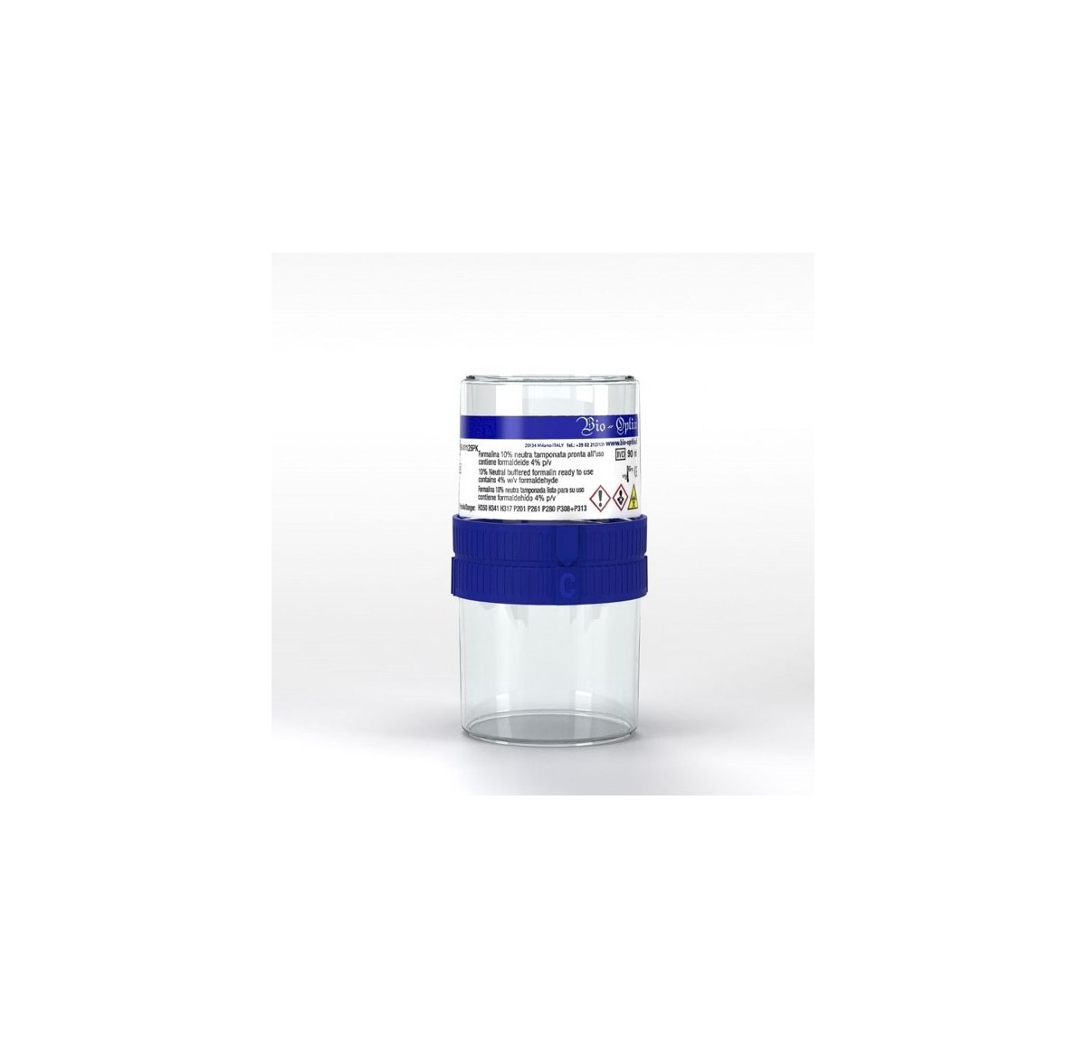 - uno, dotato di doppio tappo blu preriempito con formalina concentrata, da avvitare sul contenitore nel quale è stata inserita la biopsia.